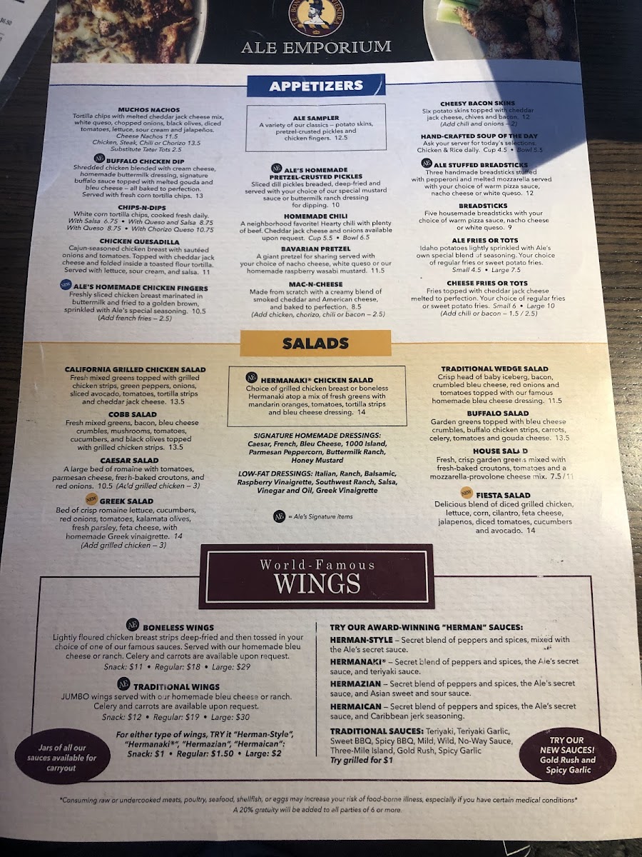 Idaho potatoes lightly sprinkled with Ale’s own special blend of seasoning