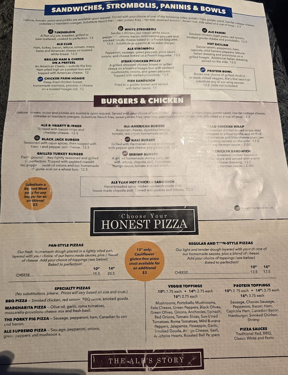 Tater tots lightly sprinkled with Ale’s own special blend of seasoning.
